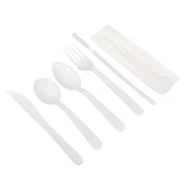 Victoria Bay 6PC Cutlery Kit PP White Heavyweight With Napkin,Fork,Knife,Teaspoon,Soup Spoon,Flex Straw 250/Case